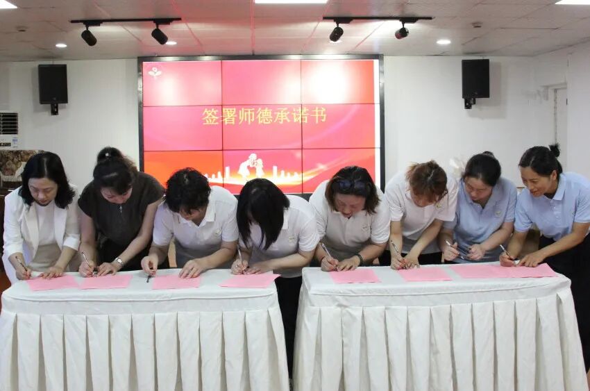 誓言落定后,全体教师依次上台签订《师德承诺书》,笔尖落下的瞬间,是对孩子、对家长、对教育事业的郑重承诺。