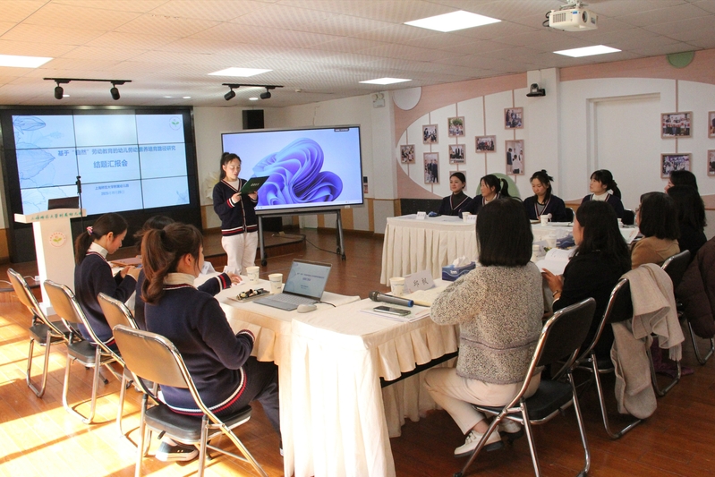 2025年11月26日上午,上海师范大学附属幼儿园在园内一楼多功能室,顺利召开了区级课题《基于“自然”劳动教育的幼儿劳动素养培育路径研究》结题论证会。本次会议邀请了上师大心理学院三位评审专家:崔丽莹教授、乌阿茹娜副教授、孙红月副教授对我园劳动课题结题进行专业点评。课题负责人邱枫园长、庄琼曼副园长及项目组教师共同参与,共同见证课题研究成果的梳理与深化。